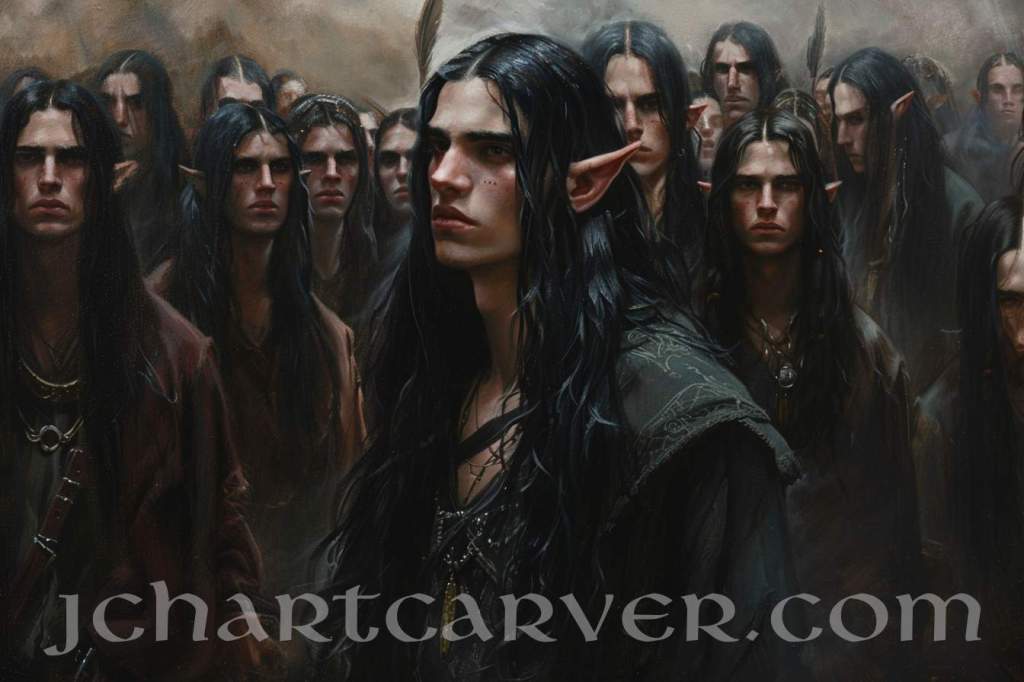 Saehgahn: One of the most notable orders in Kaihals, I must talk about, is the elven saehgahn (pronounced “say-gone”). The word saehgahn counts for two groups in Norrian society: any individual who is male, and a sacred order to which they are all bound. The word generally translates to “servant,” as it’s every male’s duty to serve as guardian to the things elven society holds dear. This especially pertains to females, a resource the elves hold in highest regard. Every elven male born to Norrian society must become a saehgahn. They do have a choice in the matter, but a refusal can be met with a variety of consequences, including death. Even from birth, the males are referred to as “saeghar” (“too young to serve”) until they’ve crossed the threshold into the adult saehgahn order. The duties of the saehgahn are physical in many aspects, particularly martial. First and foremost, a saehgahn is a guardian, capable of defending his home, clan, and country. After that, skills in other physical aspects, such as building and crafting are held in high regard. Extracurricular skills like the arts and music are left to elven females. Third, a duty highly cherished and yearned for, is the physical duty of breeding. Very few saehgahn are considered “lucky” enough to perform this duty with a wife due to the severe male-to-female imbalance. But all males harbor a secret longing to fulfill this duty. Not all male elves can participate in the order of the saehgahn, however, as some are deemed unworthy. These unworthy males are categorized as sarakren (“he is forbidden”), a status that comes with a branded symbol applied to their bodies. Sarakren males can participate in fighting and building, but are banned from marrying.